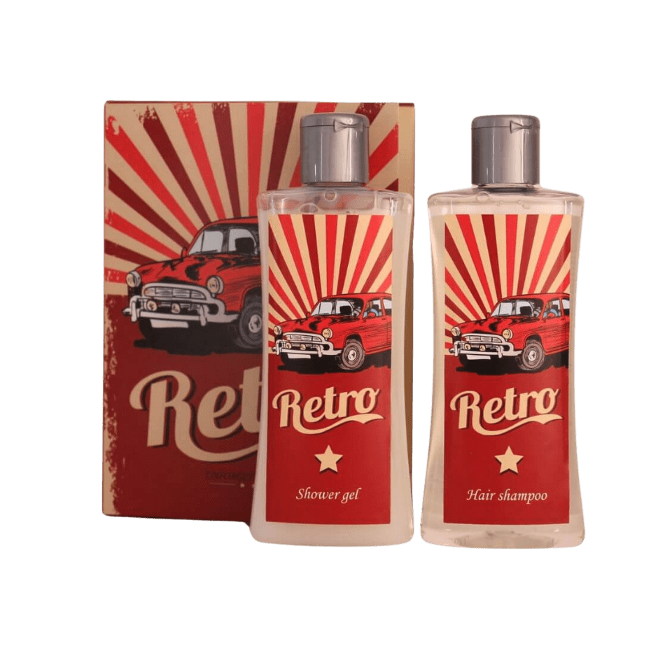 Een cadeau dat er uitspringt – letterlijk. Deze retro giftset in de vorm van een boek bevat een shampoo en shower gel van 250 ml, beide met een verleidelijk whiskey aroma.